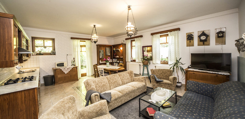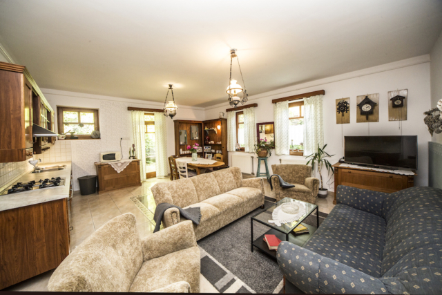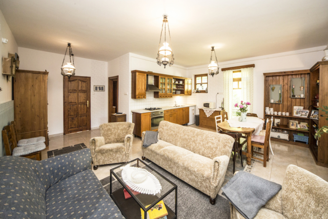 Jól felszerelt konyhája és nappali-étkezője nagy családok, baráti társaságok igényeit szolgálja.
