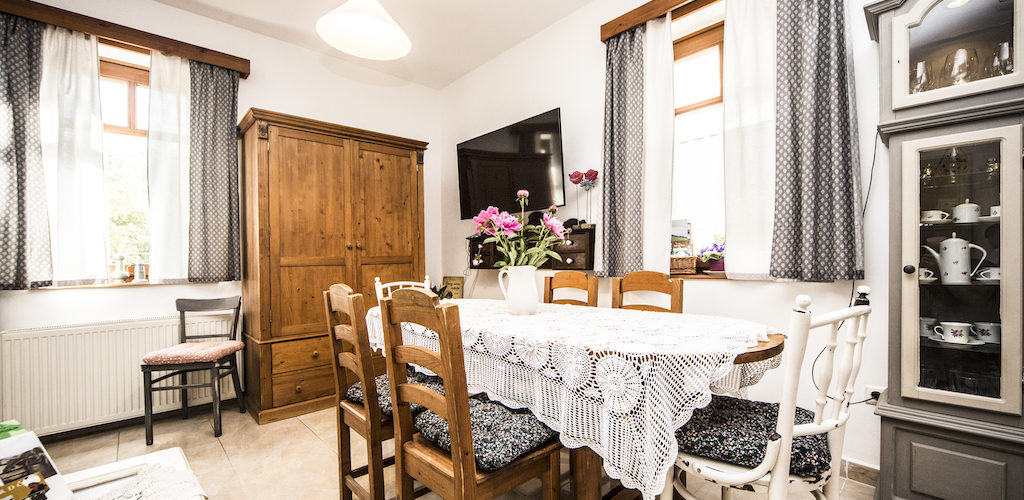 Ezen kívül egy jól felszerelt konyha és tágas nappali- étkező szolgálja a vendégek kényelmét.